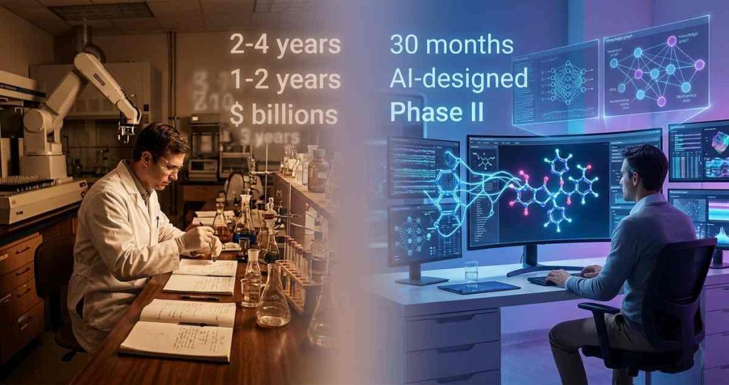 In 2023, Insilico announced that a molecule discovered entirely by AI—ISM001-055 for idiopathic pulmonary fibrosis—had entered Phase II clinical trials. The journey from target identification to Phase I completion took just 30 months and cost a fraction of traditional development. The molecule was designed, synthesized, and tested in animals entirely under AI guidance. This milestone demonstrated that AI could not just accelerate individual steps but compress the entire discovery pipeline.